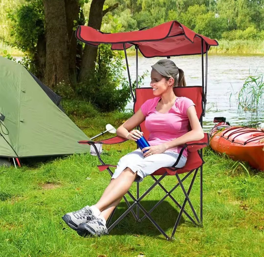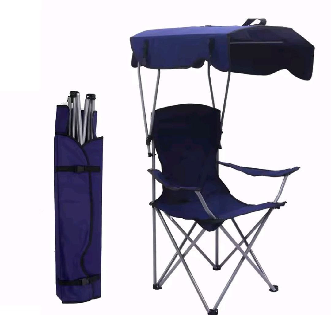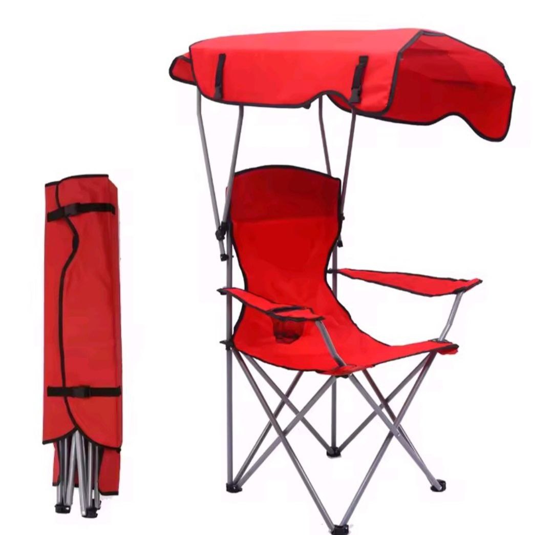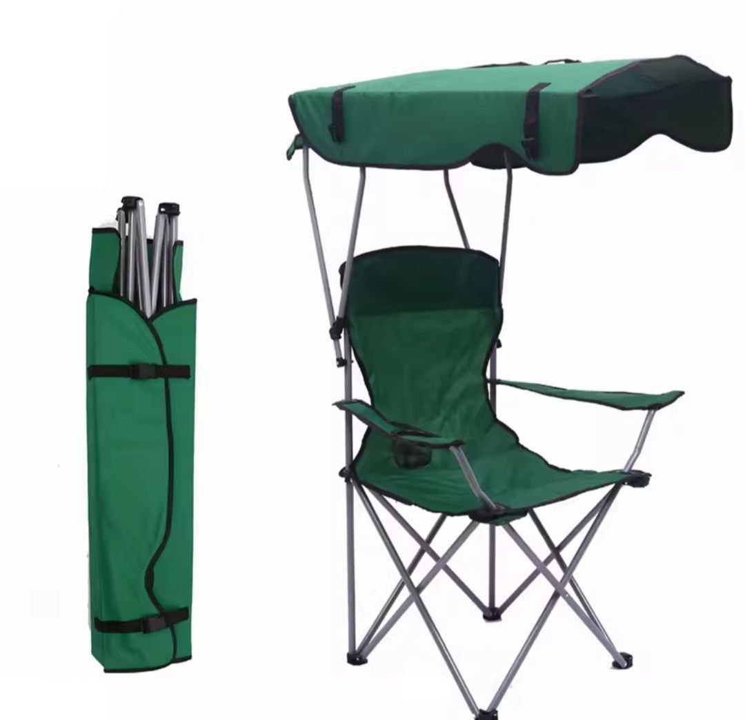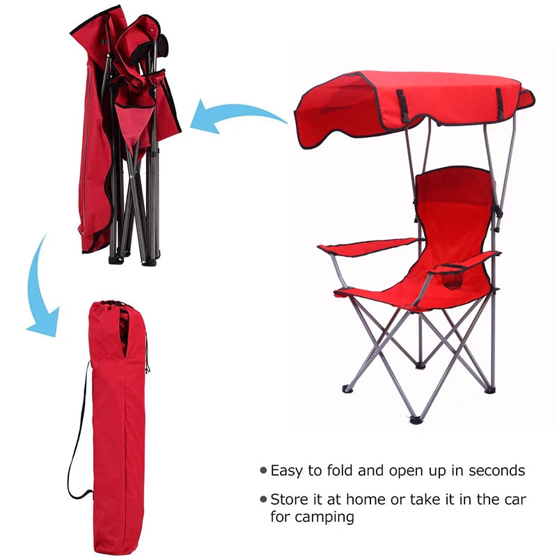 Chaise de campismo dobrável, chaise de exterior com porte-gobelet, toldo, acoudoir, bolsa de transporte para áreas de piquenique aleatórias